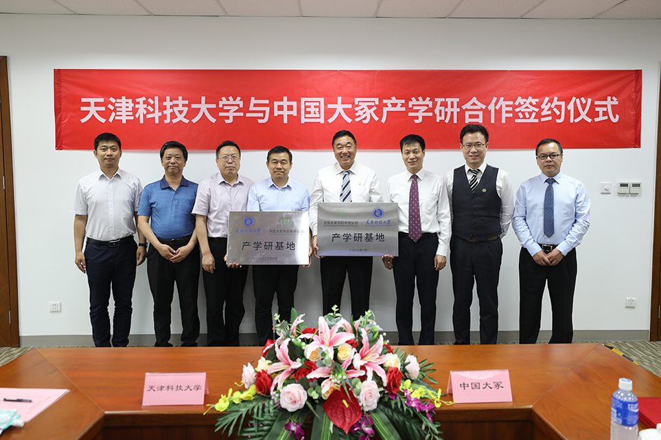 ? ? ? ?在雙方的見證下,中國大冢黨委委員、副總經理苗巖、天津科技大學生物工程學院黨委書記杜巖剛作為代表完成協議簽字,雙方領導分別為天津科技大學、中國大冢產學研基地授牌。